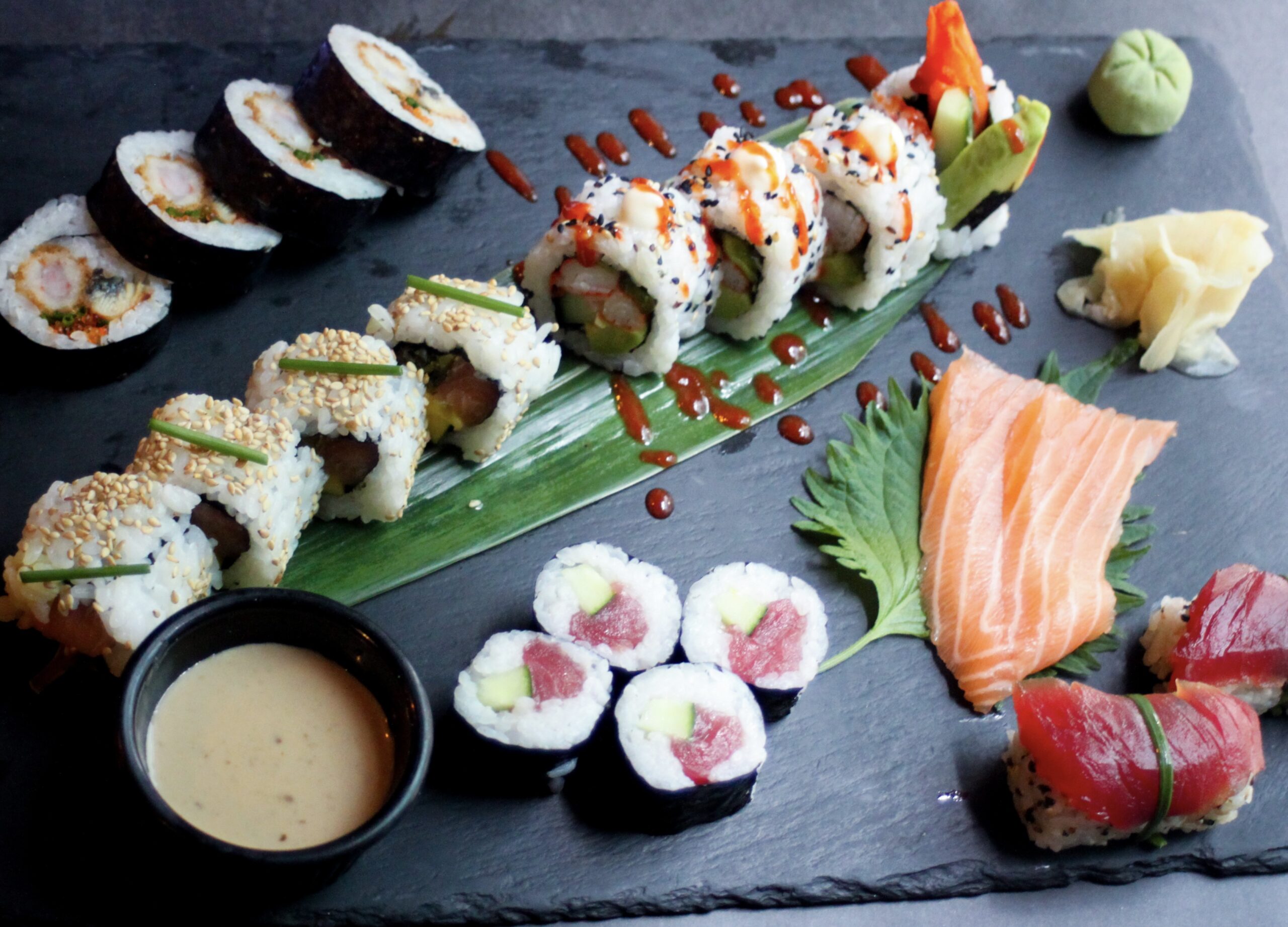 Butterfly Roll, Snow Crab Roll, Salmon Goma Takana Roll, Tuna Nigiri, Salmon Sashimi, Tuna & Cucumber Hosomaki